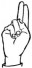 На ћирилици написано ЛАРА ДАБИЋ састоји се из 9 слова [?]. Исписано ћириличном једноручном азбуком за глувонеме: